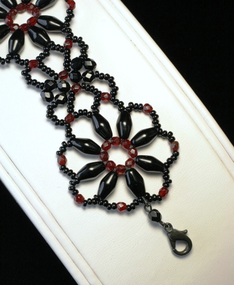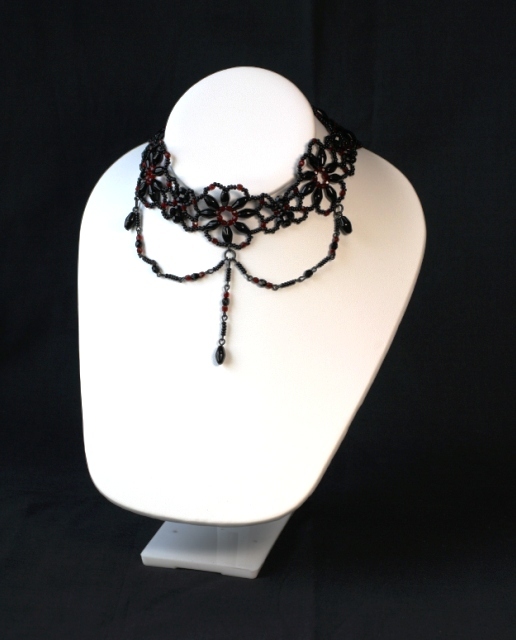 Lyhyt kaulapantakoru Gothica mustista ja tummanpunaisista lasihelmistä
