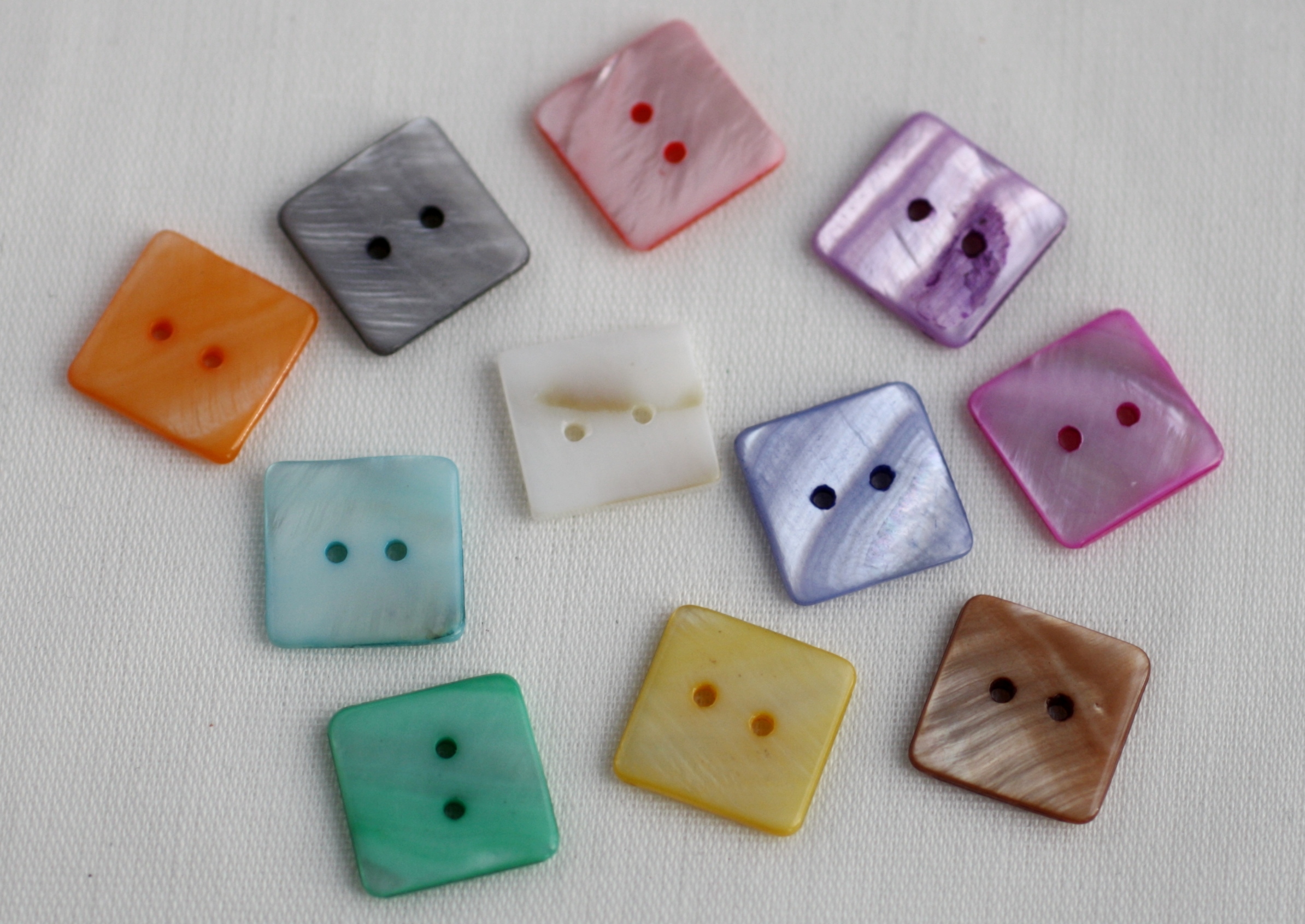Helmiäisnappi neliö 15x15x2 mm reikä 2mm 1 kpl