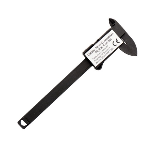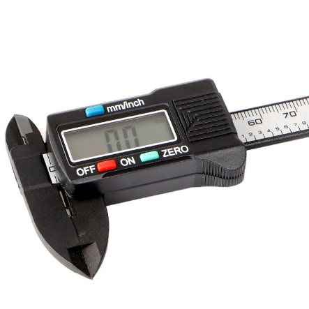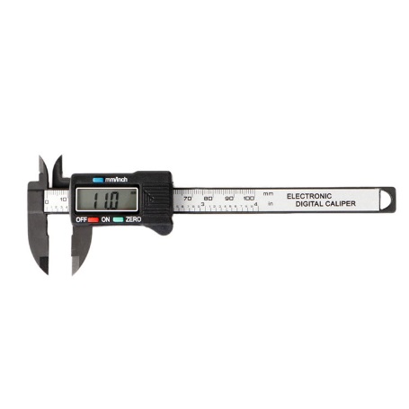 Kevyt työntömitta digitaalisella näytöllä. Mittayksiköt cm ja tuuma.