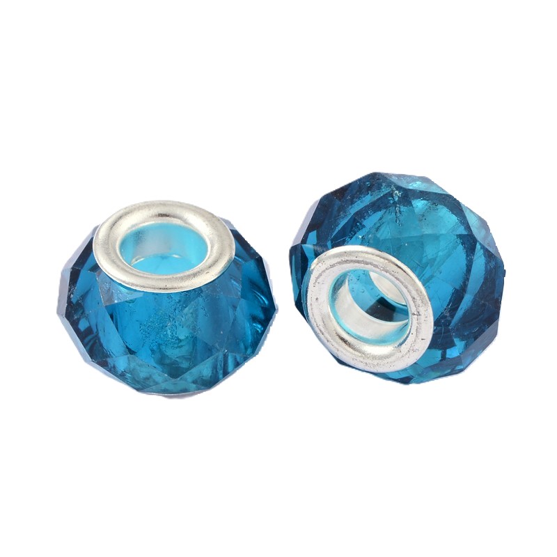 Isoreikäinen helmi viistehiottua lasia kirkas/tumma petrooli 13x8 mm