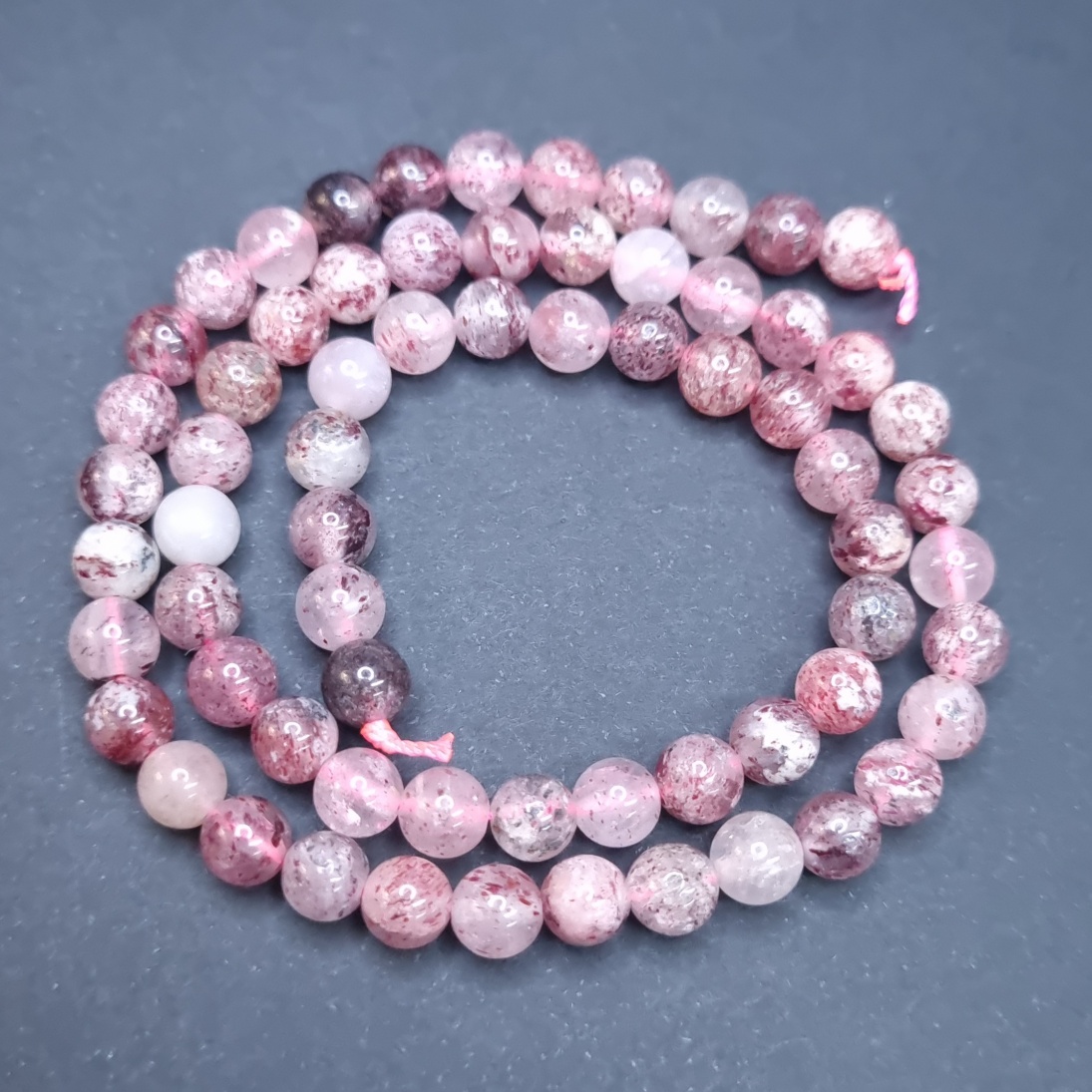 Värjäämätön, punaisen eriasteinen sävy sopii hyvin yhteen esim. hopean kanssa.Nauhassa n. 60-62 kpl. Reikäkoko 1 mm.