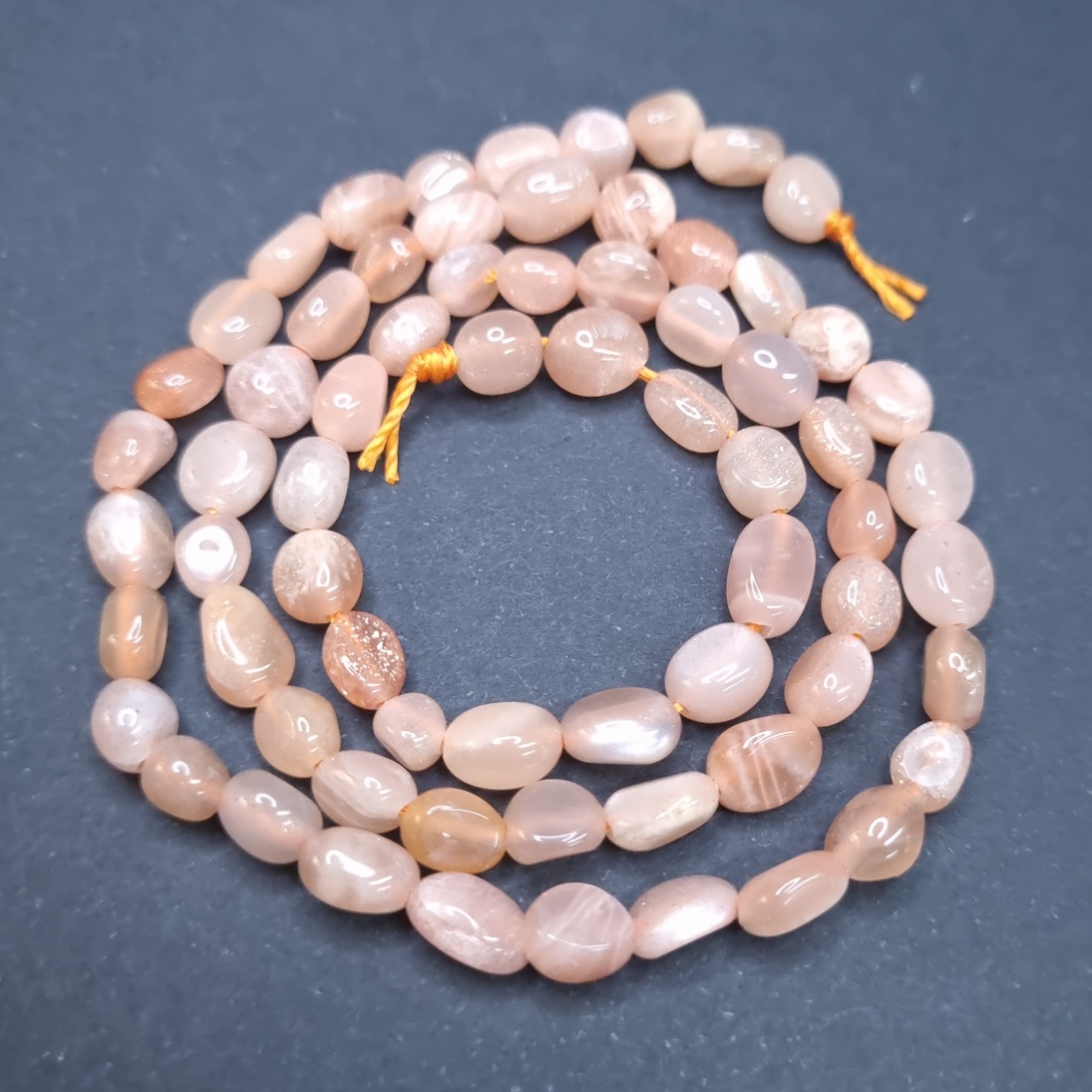 Tukkuerä kivihelmi pikkunugetti aurinkokivi n. 36-39 cm nauha