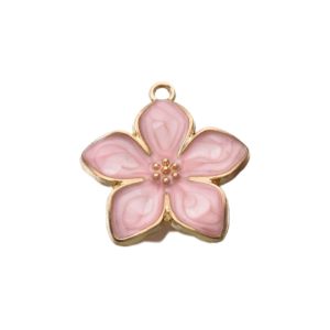 Metalliemalimaskotti "kirsikankukka" vaaleanpunainen/ kulta 27,5x25,5 mm