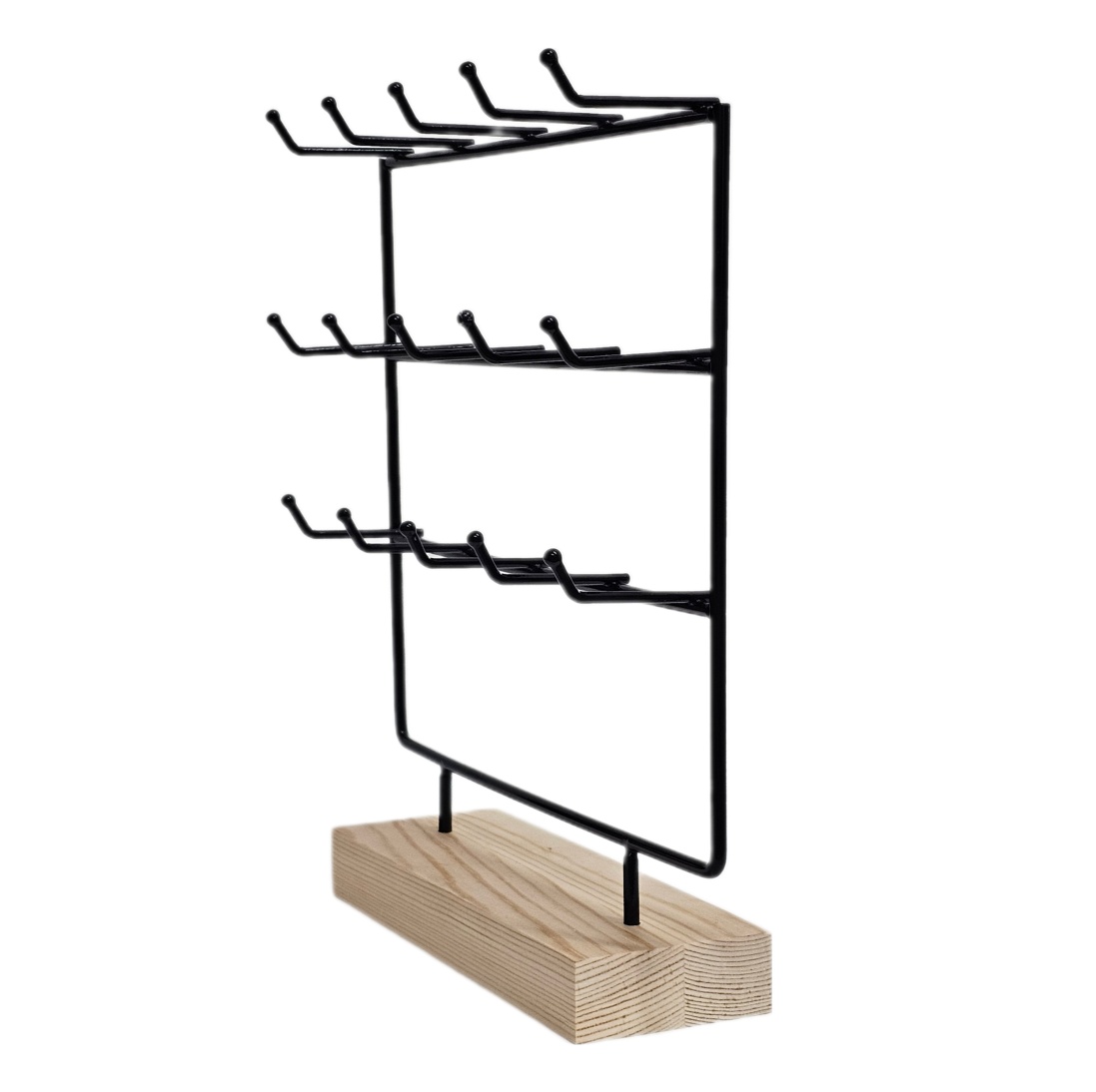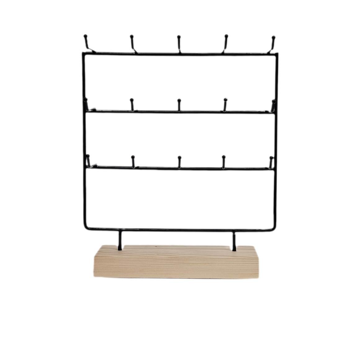 Korustandi koukuilla korvakoruille/ rannekoruille, musta metalli/puu