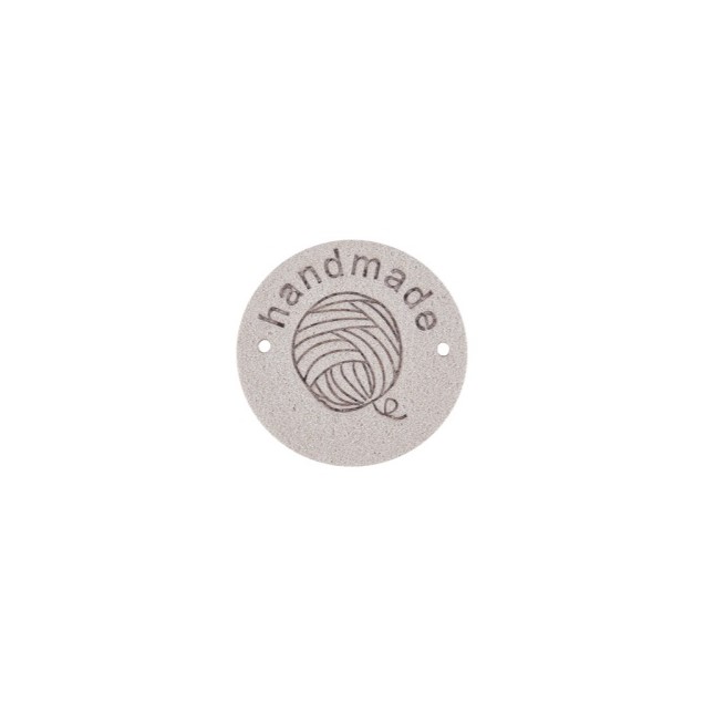 Kangasmerkki keinomokkaa Handmade/ lankakerä vaaleanharmaa pyöreä 25 mm