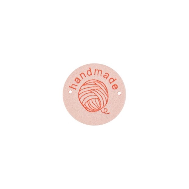 Kangasmerkki keinomokkaa Handmade/ lankakerä vaalea persikka pyöreä 25 mm