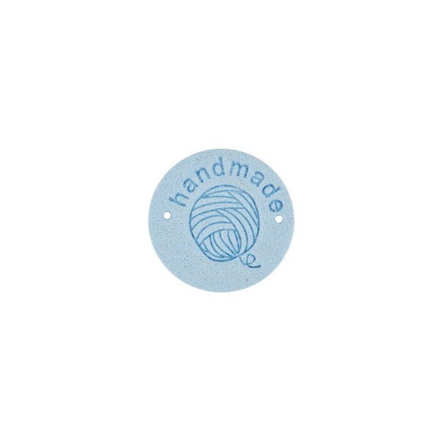 Kangasmerkki keinomokkaa Handmade/ lankakerä vaaleansininen pyöreä 25 mm