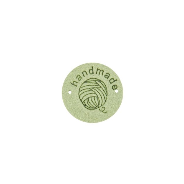 Kangasmerkki keinomokkaa Handmade/ lankakerä vaaleanvihreä pyöreä 25 mm