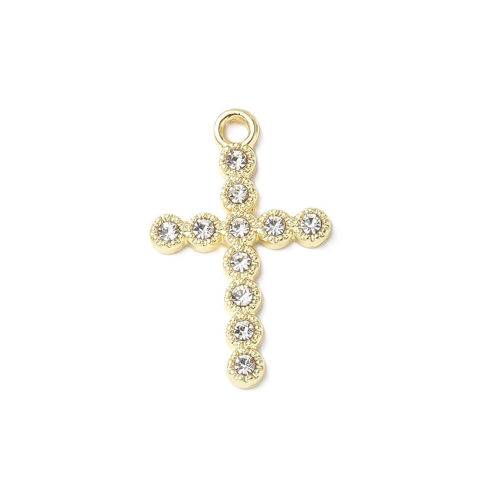 Metalliriipus pieni risti 2,5x1,3 cm kullanvärinen/ kirkkaat strassit 1 kpl