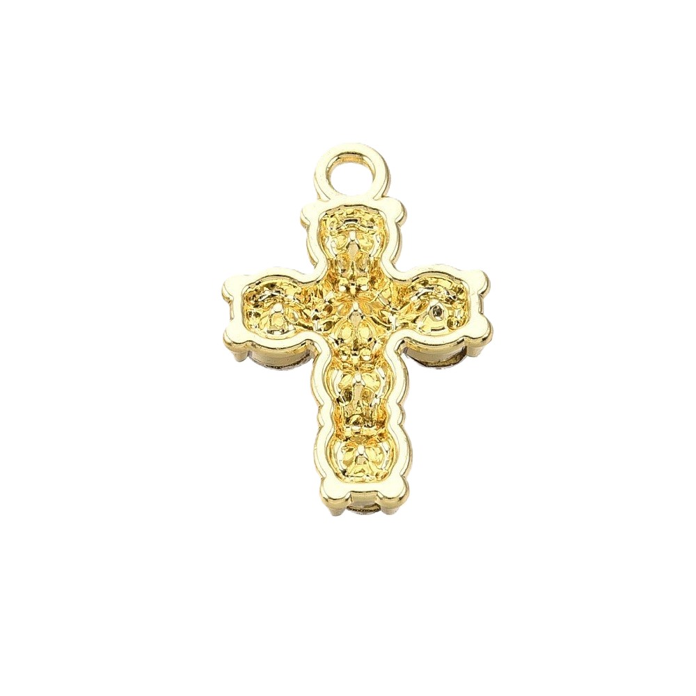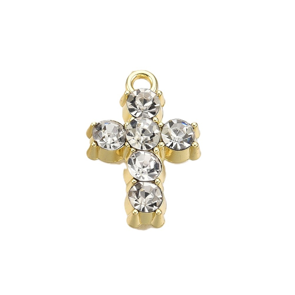 Metalliriipus pieni leveä risti 2,1x1,4 cm kullanvärinen/ kirkkaat strassit 1 kpl