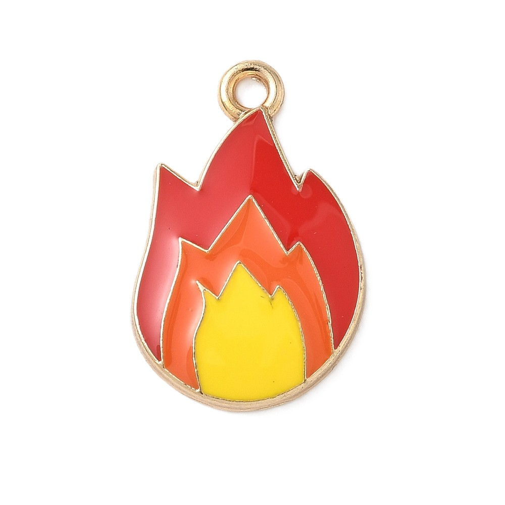 Metalliemalimaskotti liekit 23x15 mm punainen / oranssi / keltainen