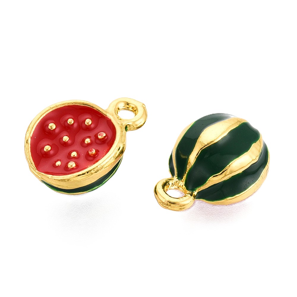 Metalliemalimaskotti 3D vesimeloni punainen / vihreä /kulta 14x10x6,8 mm