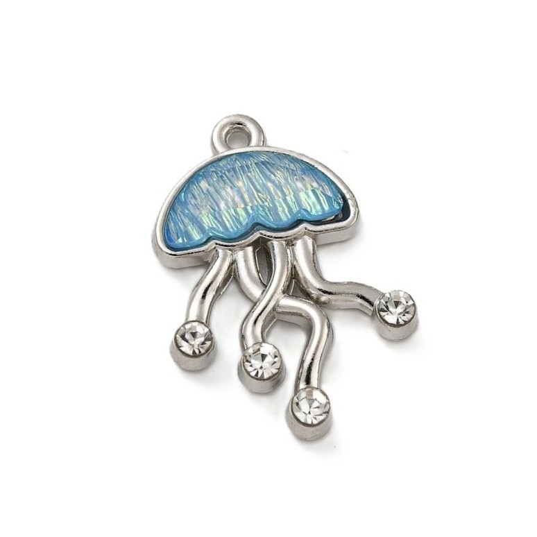 Metalliresiinimaskotti meduusa aqua / platina / kirkas strassi 19,5x14 mm