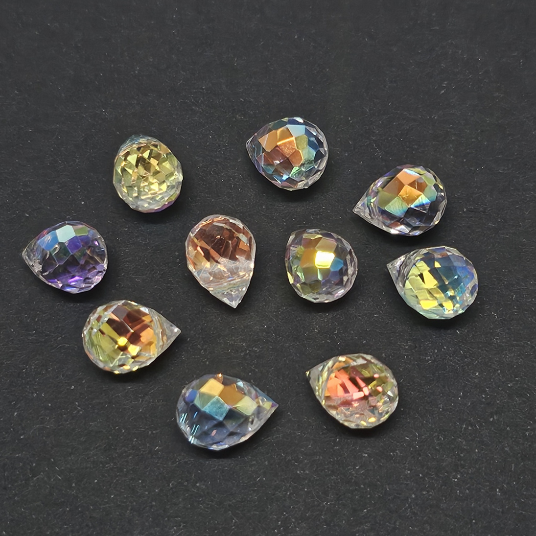 Viistehiotut pisarahelmet sopivat korvakoruihin, riipuksiin ja hapsun pääksi.