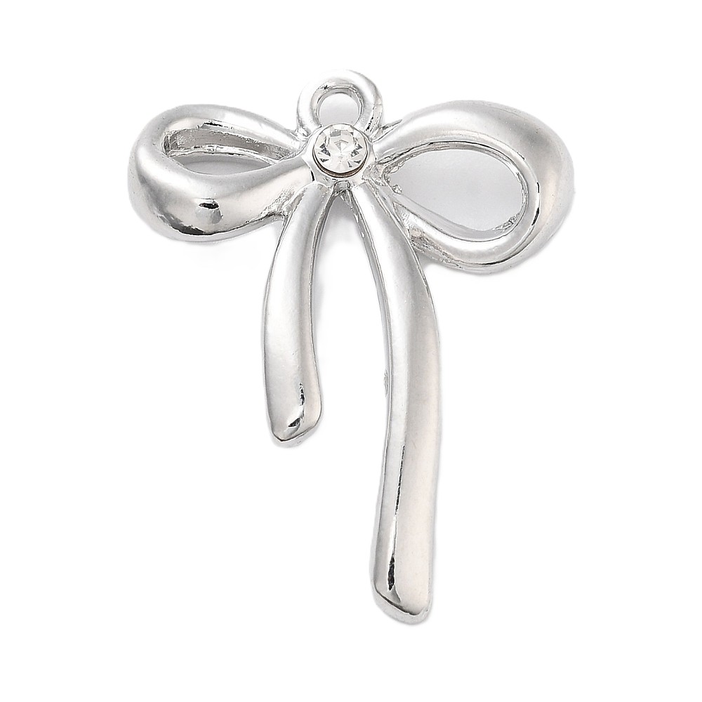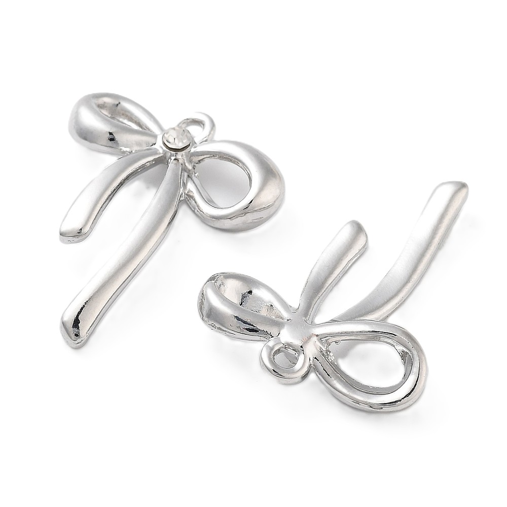 Metallimaskotti rusetti platinanvärinen / kirkas strassi 26x20 mm