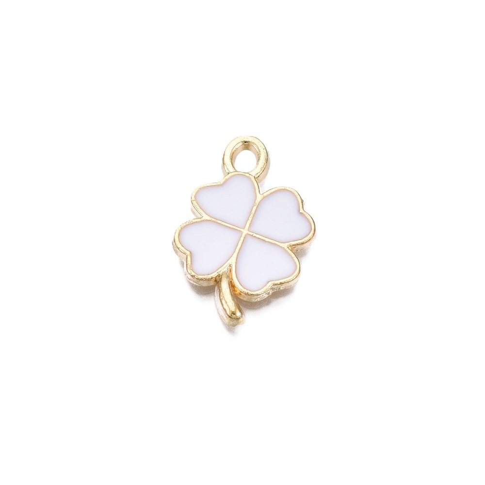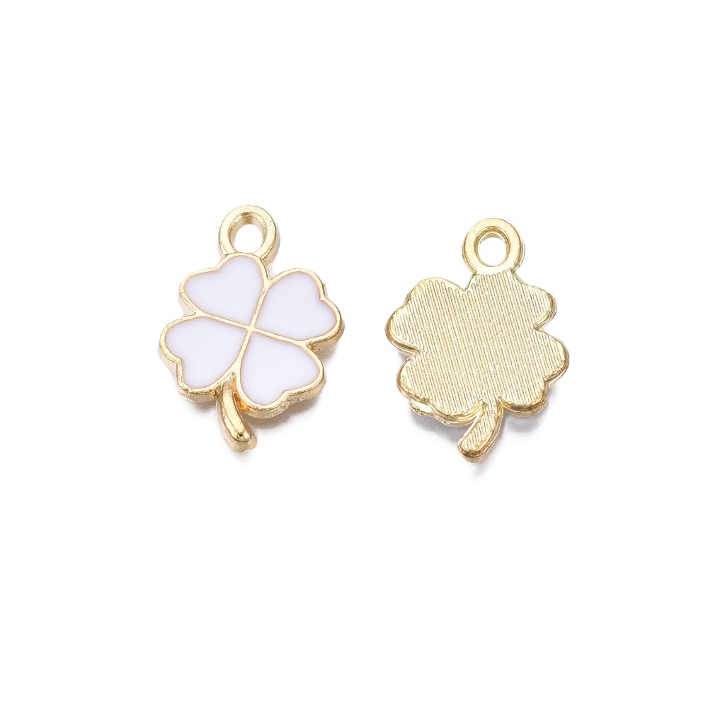 Metalliemalimaskotti neliapila valkoinen/ kulta 19x13 mm