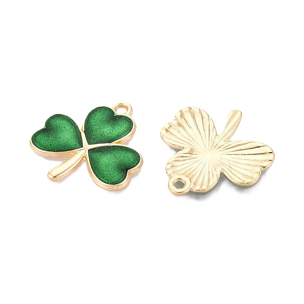 Metalliemalimaskotti kolmiapila vihreä/ kulta 19x13 mm
