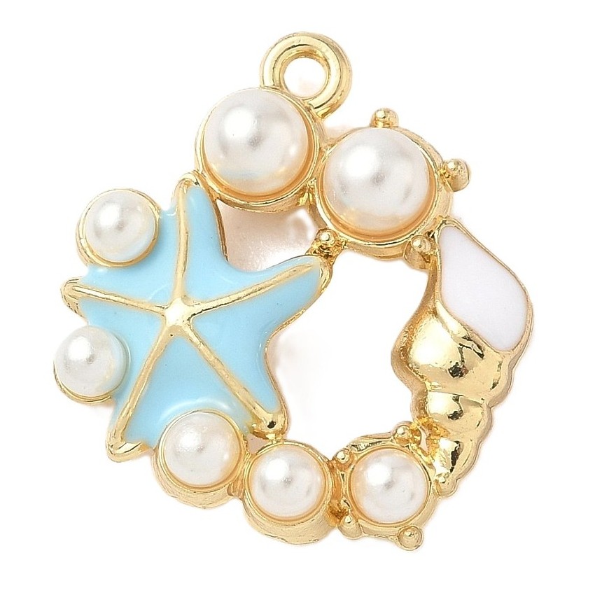 Metalliemalimaskotti 3D kranssi aqua meritähti/ simpukka / helmet / kulta /strassit 25x22 mm