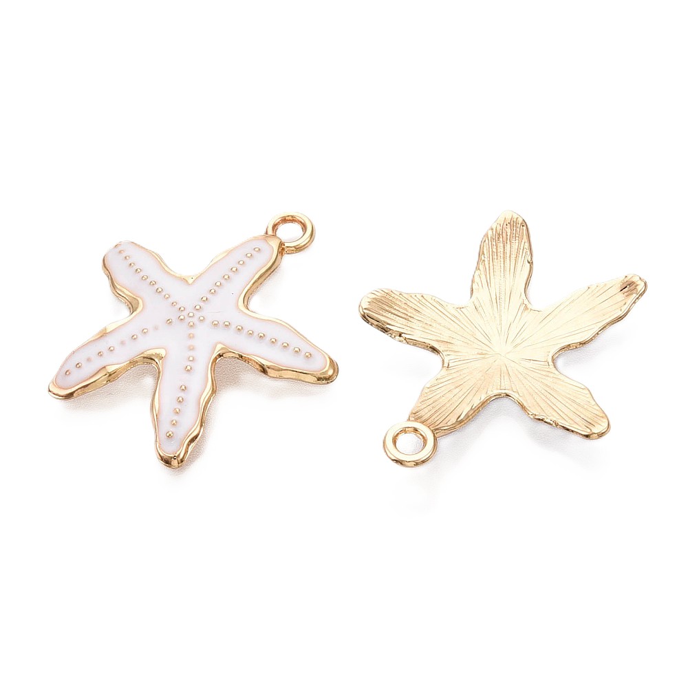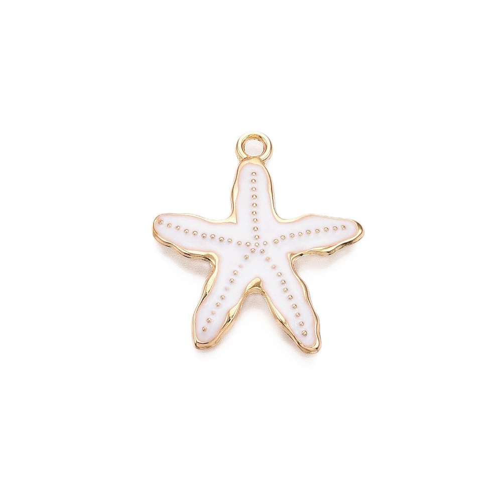 Metalliemalimaskotti meritähti valkoinen / kulta 29,7x26 mm