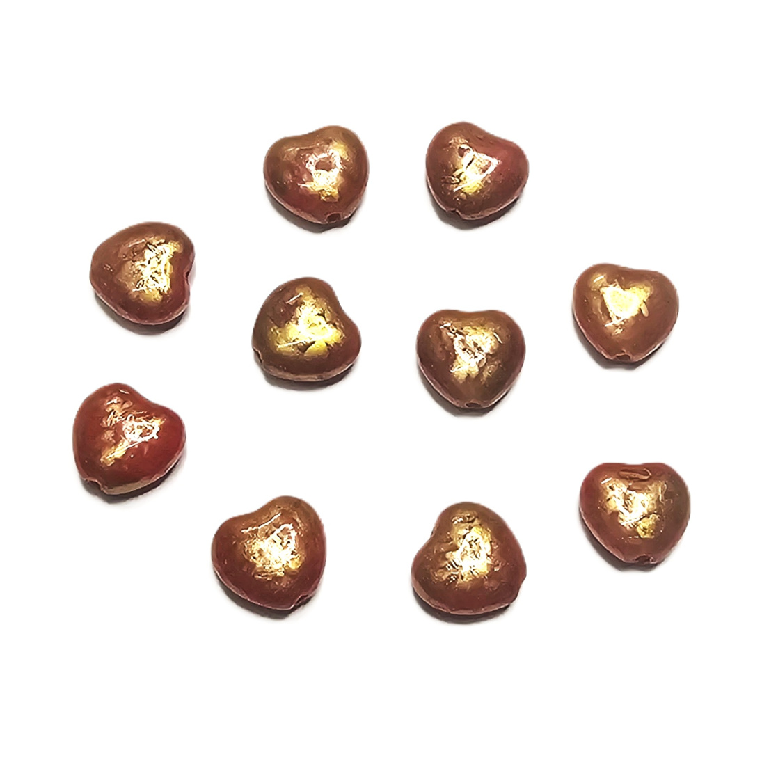 Sydän 8 mm opaakki punainen pintavärjätty matta kultaläikkä 10 kpl