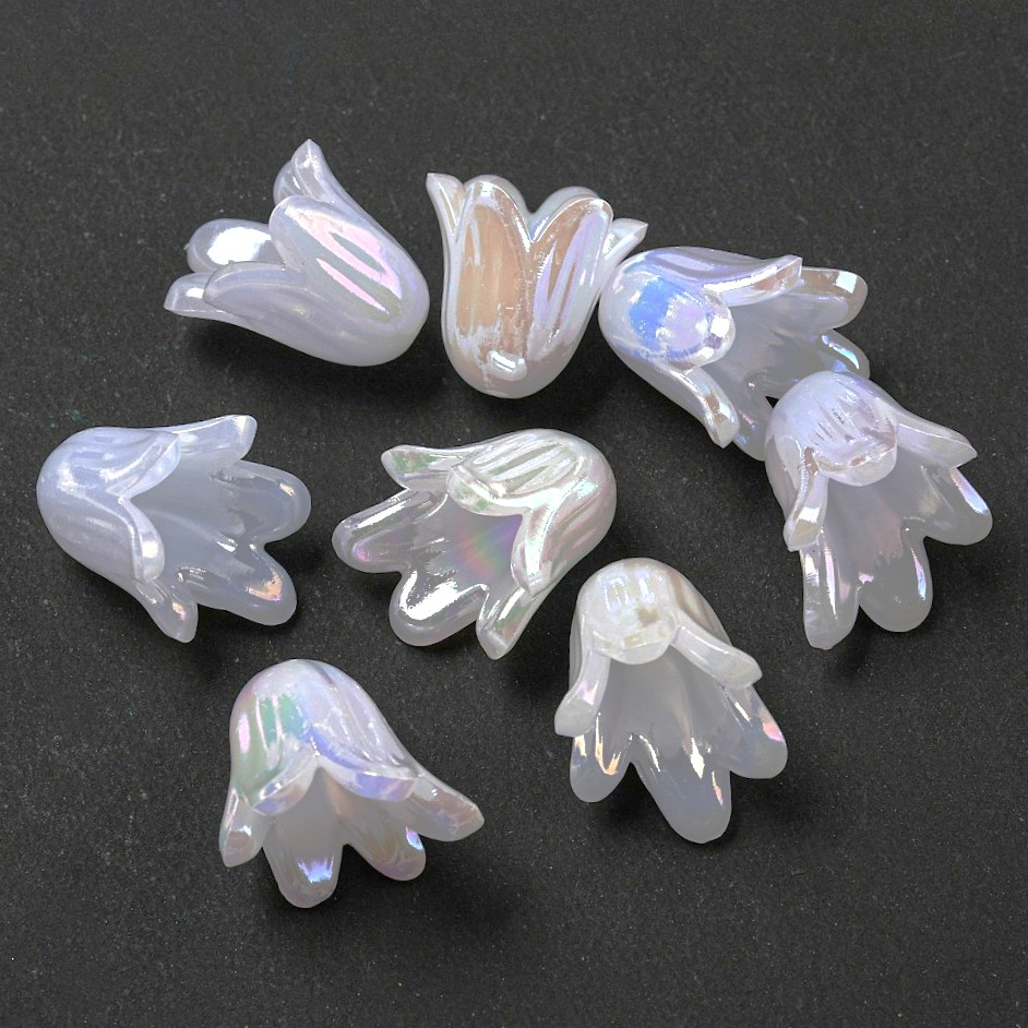 Kevyt ja edullinen vaihtoehto helmiäislasihelmille. Myyntierässä 6 kpl isoja kukkanuppukalotteja. Reikä pystysuuntaan helmen läpi. Reikäkoko n. 1,5 mm.