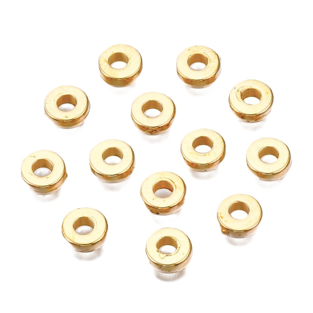Synteettinen helmi sileä litteä rondelli kullanvärinen 6x2 mm n. 25 kpl