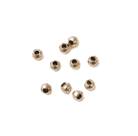 Myyntierässä 1 kpl. Saumaton pyöreä messinkihelmi 14 karaatin gold filled-kultauksella. Reikäkoko n. 0,5 mm.