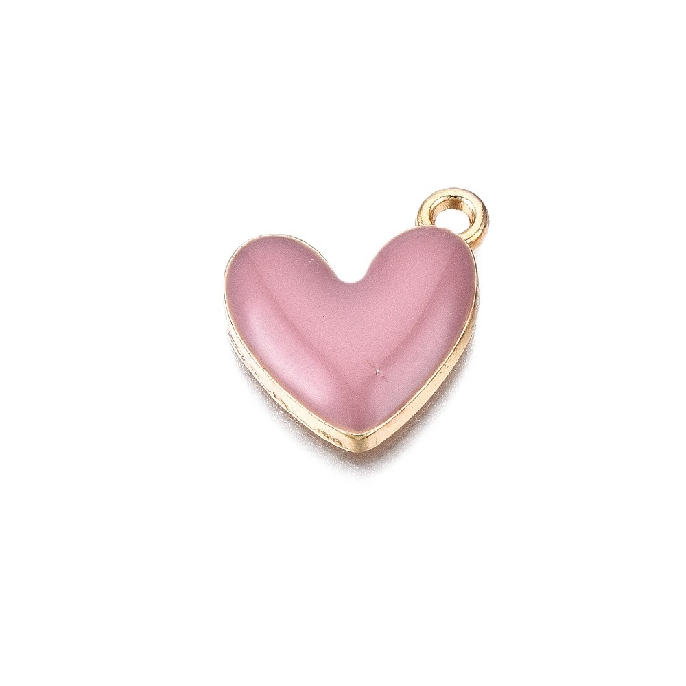 Metalliemalimaskotti sydän tumma roosa/ kulta 16x15 mm