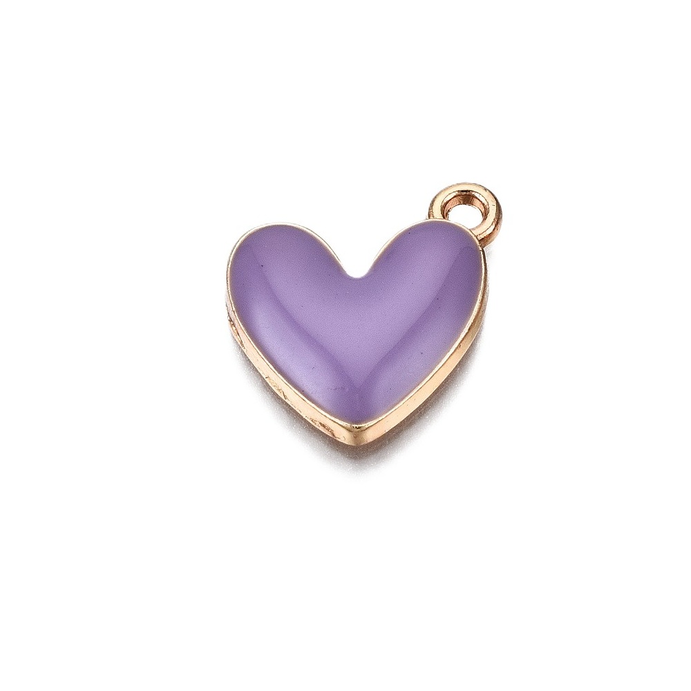 Metalliemalimaskotti sydän violetti/ kulta 16x15 mm