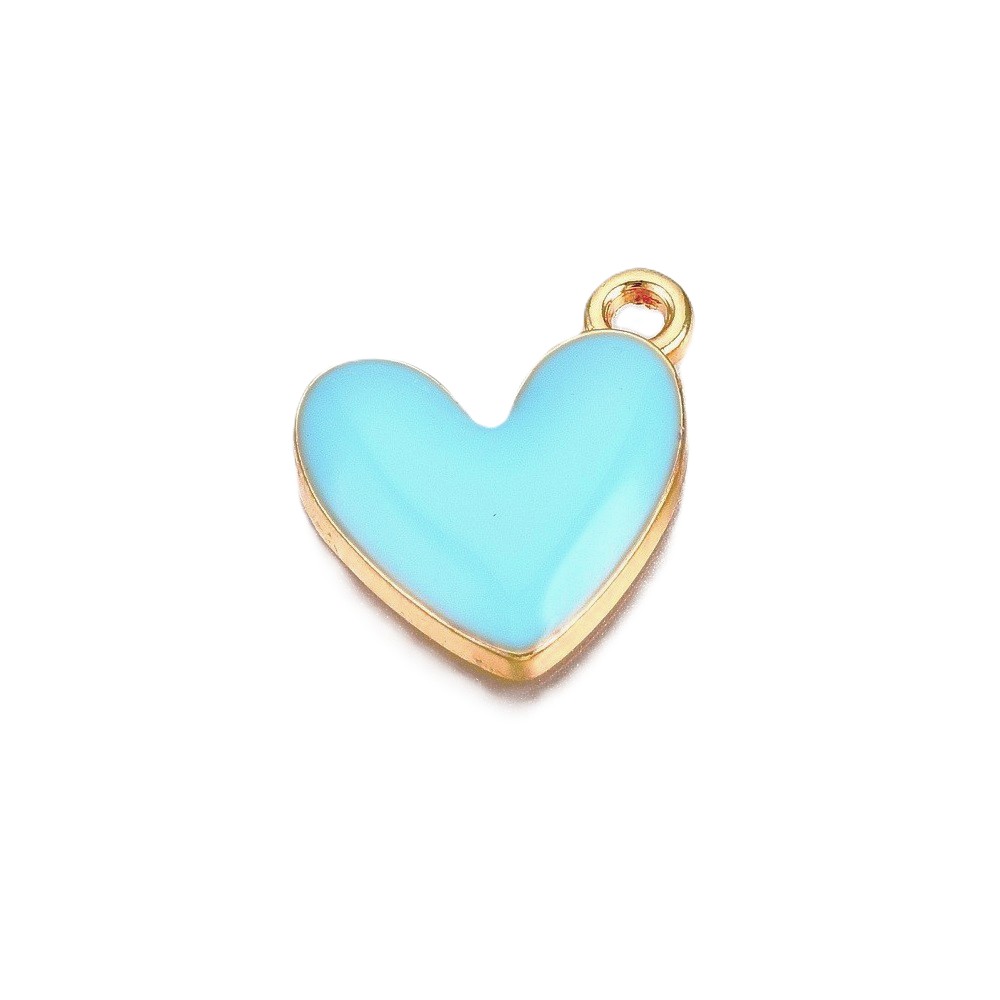 Metalliemalimaskotti sydän turkoosi/ kulta 16x15 mm