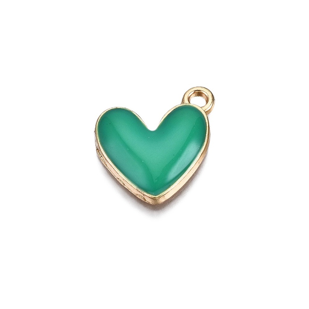 Metalliemalimaskotti sydän merenvihreä/ kulta 16x15 mm