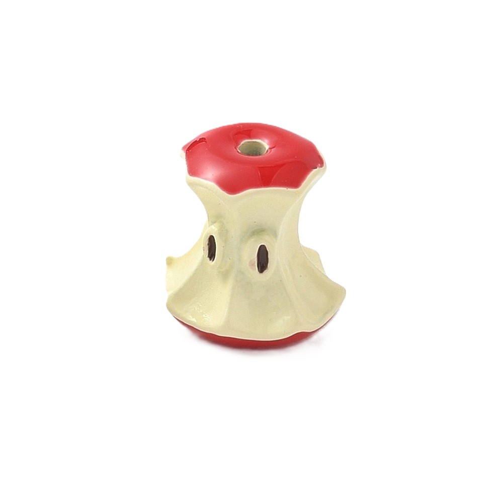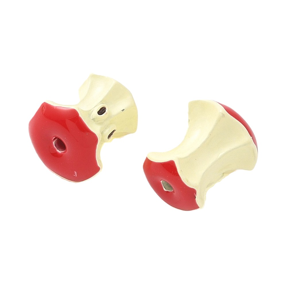 Metalliemalihelmi 3D omenan kara punainen / vaaleankeltainen 11x10 mm