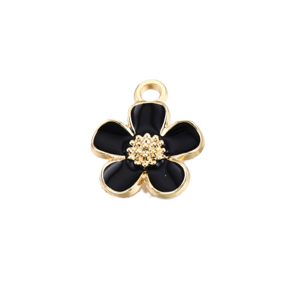 Metalliemalimaskotti kukka musta/kulta 16x13 mm