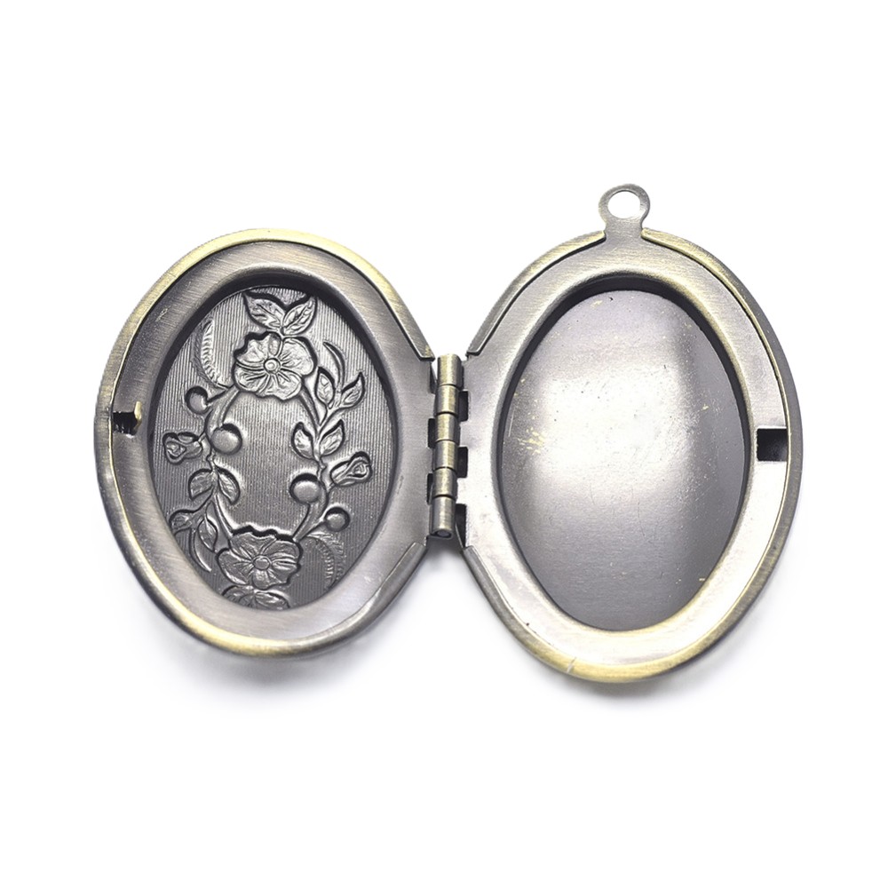 Avattava medaljonkiriipus. Myyntierässä 1 kpl. Sisään mahtuu molemmin puolin n. 18x29 mm kokoinen ovaalinmuotoinen kuva. Kiinnitä kuva liimalla, kaksipuolisella teipillä tai leikkaa kuva tarrakuvasta. Ketjut ja nauhat löydät Korunosat-kategoriasta. Riipuspidikkeet myydään erikseen.