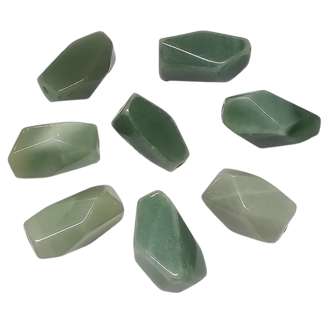 Hiottu kivihelminugetti. Helmen koko vaihtelee n. 22-38x15-30x8-20 mm. Reikäkoko n. 2-3 mm.