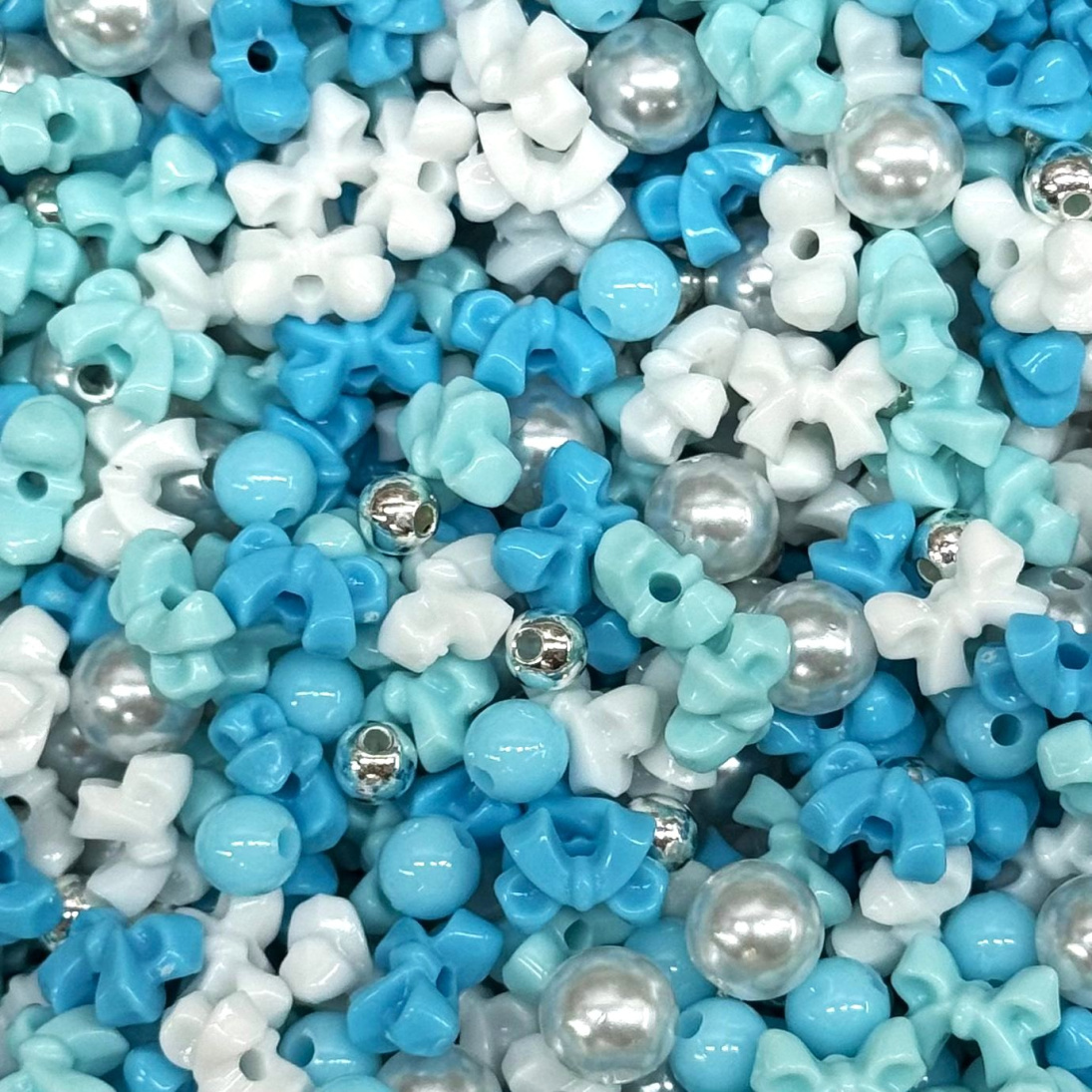 Akryylihelmilajitelma "rusetti" turkoosi / aqua / hopea n. 10 g