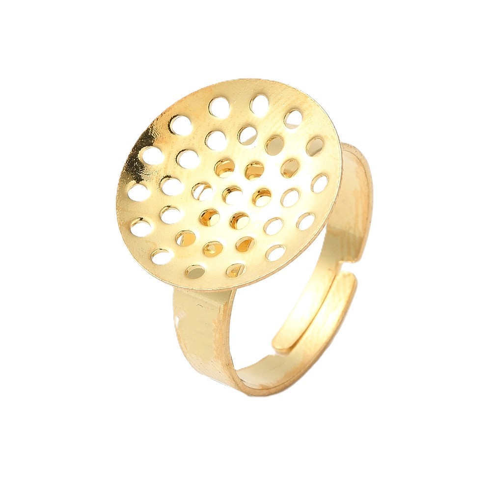 Sormuspohja 18k kullattua 304 terästä säädettävä pyöreä 16 mm kiinteä reikäpohja
