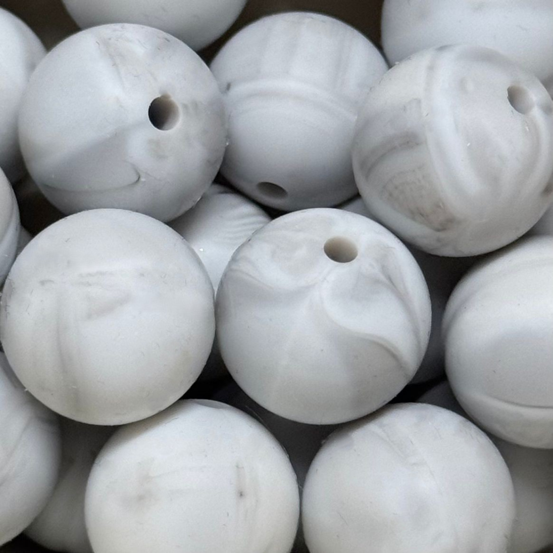 Silikonihelmi pyöreä marmori / valkoharmaa