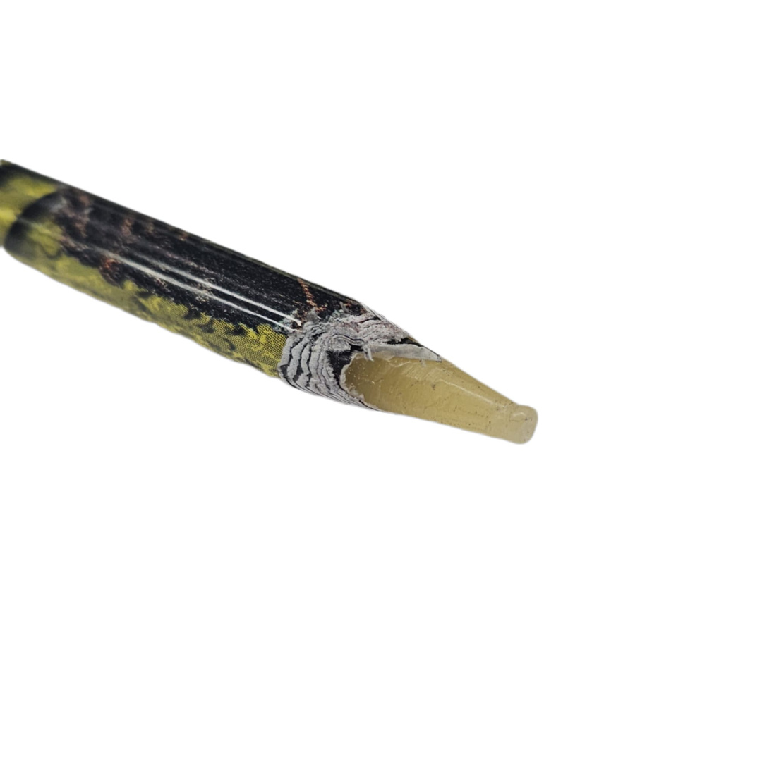 Teroitettava kynä, jonka sisus on tarttuvaa vahaa.