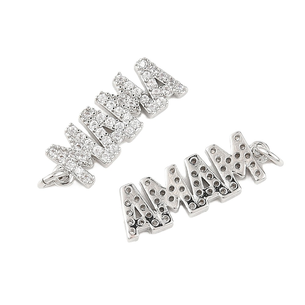 Metalliriipus "Mama" 20,5x7 mm platinoitu/ kuutioitu zirkonia 1 kpl