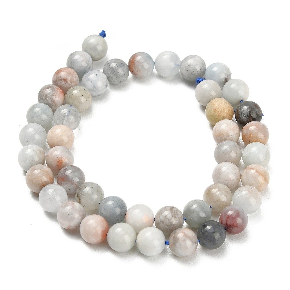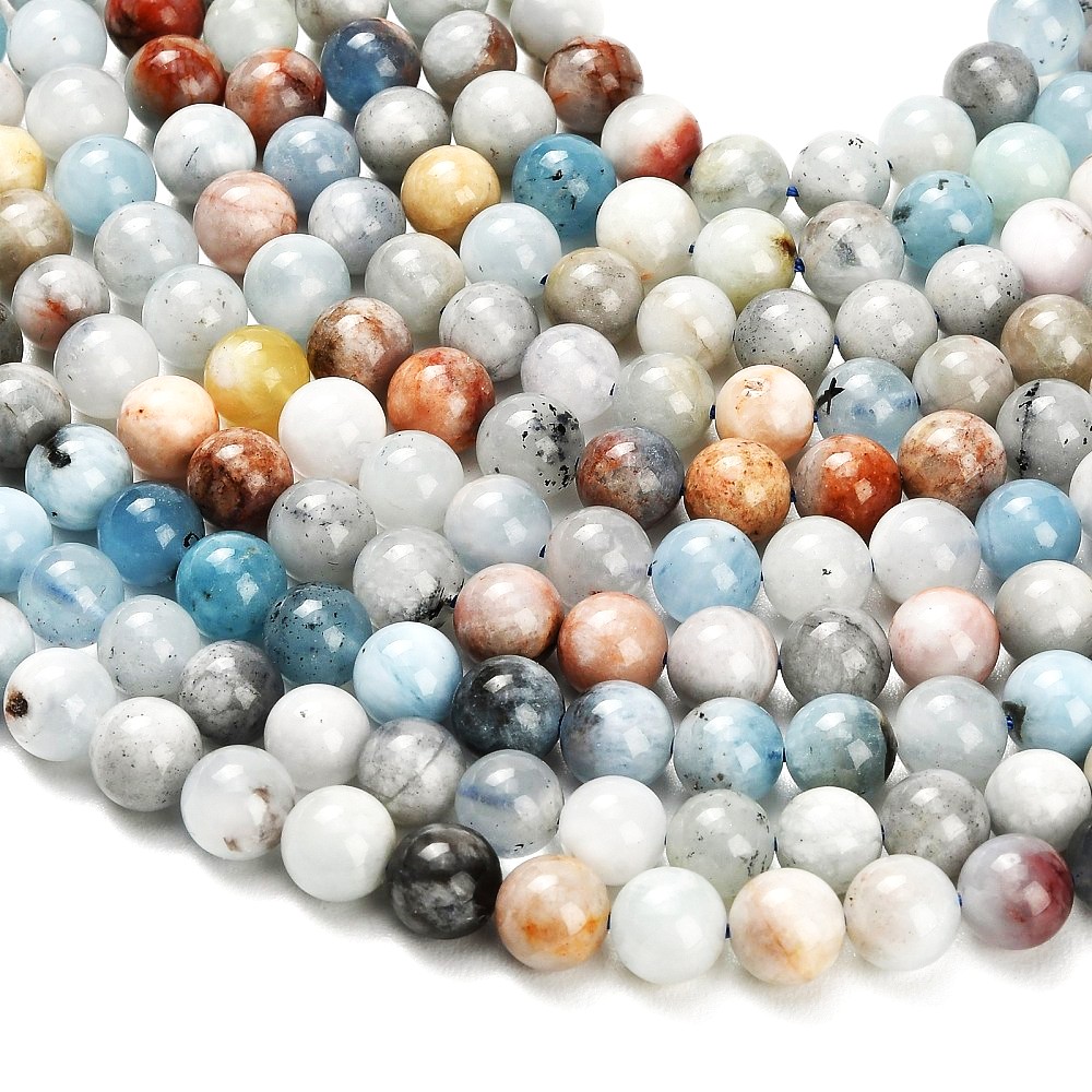 Tukkuerä kivihelmi pyöreä 8 mm akvamariini n. 38 cm nauha