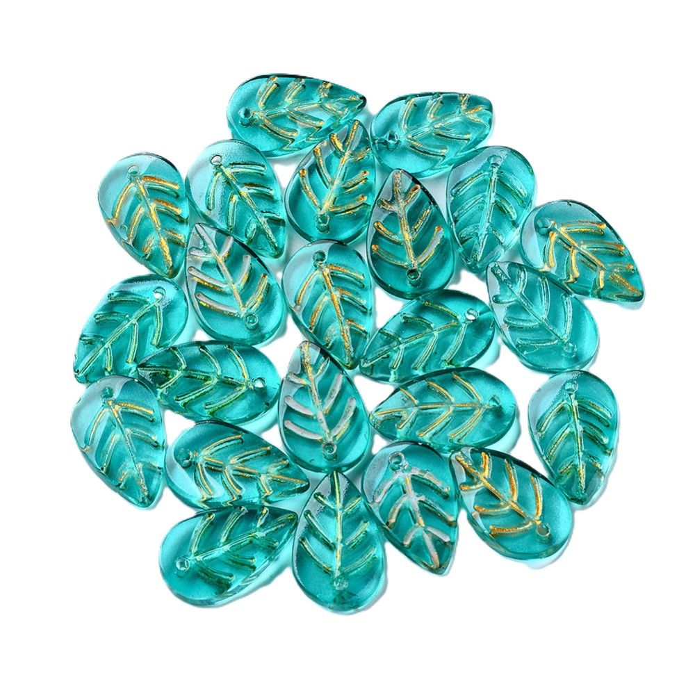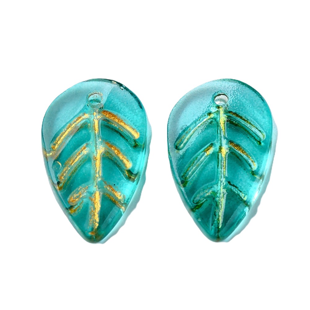 Iso lehti 18x13 mm kirkas merenvihreä/ kulta 5 kpl