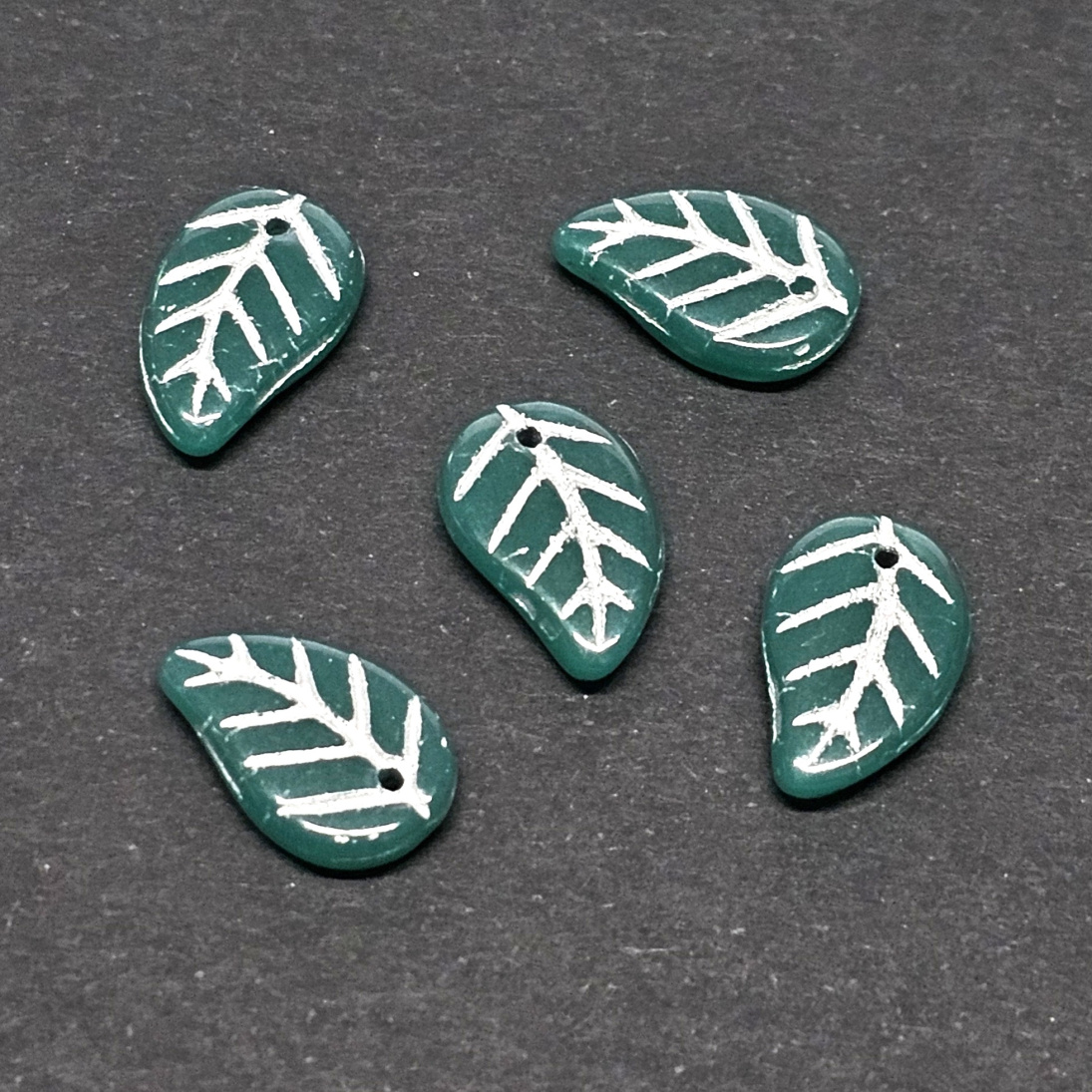Jalavan lehti 14x9 mm opaakki merenvihreä / hopea 5 kpl