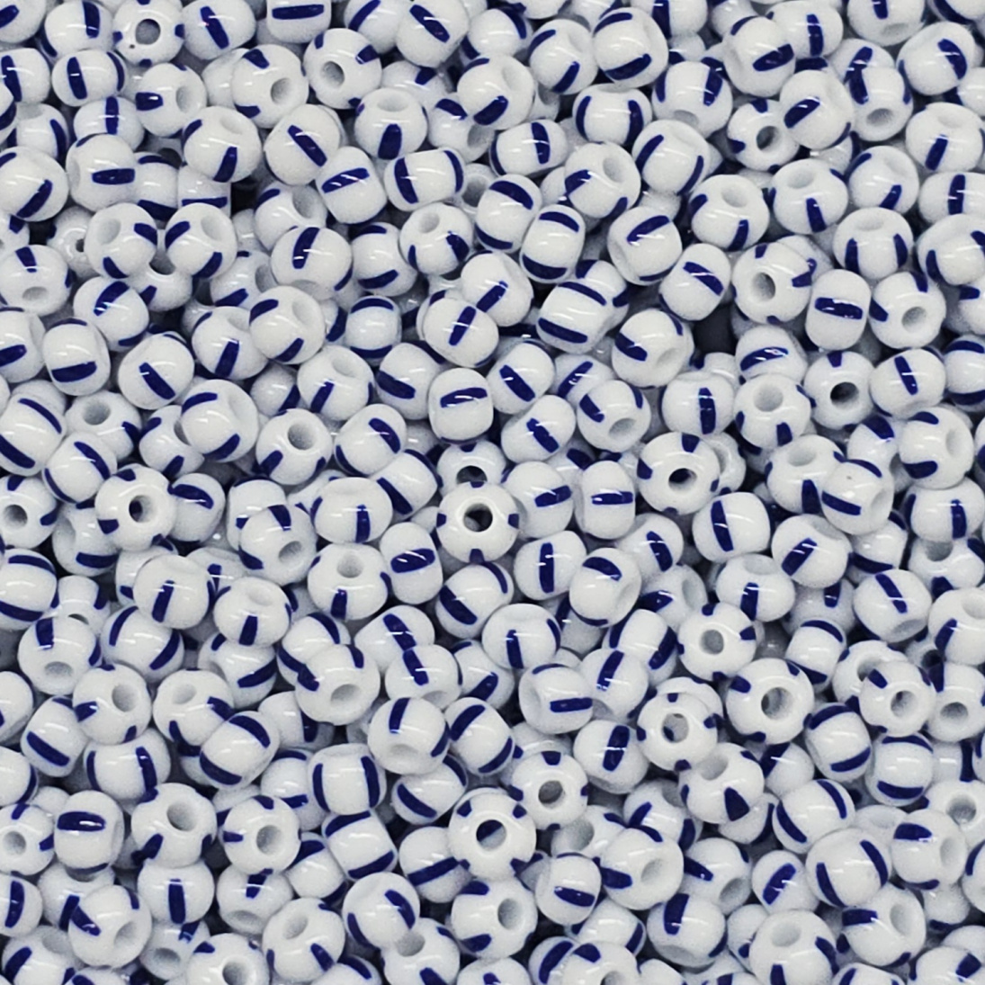 Siemenhelmi 6/0 Tsekki opaakki valkoinen / siniraitainen 10 g