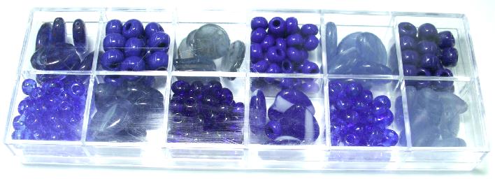 Lajitelma eri kokoisia ja värisiä tsekkiläisiä lasihelmiä kätevässä säilytysrasiassa. Rasioiden sisältö vaihtelee.