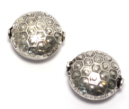 Metallihelmi antiikkihopeanvärinen pullea kennokuvioitu pastilli 20 mm 1 kpl