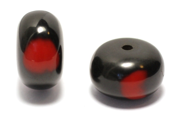 Synteettinen pihkahelmi rondelli musta-punainen n. 13x22 mm 1 kpl